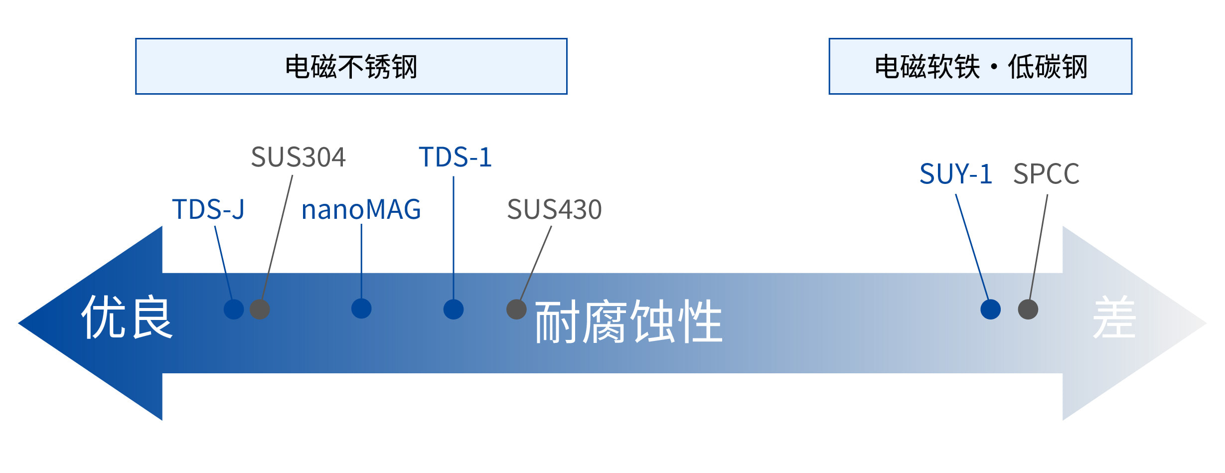 - TDS-J:具有相当于SUS304的不锈耐蚀性和优异的软磁性能的电磁不锈钢。