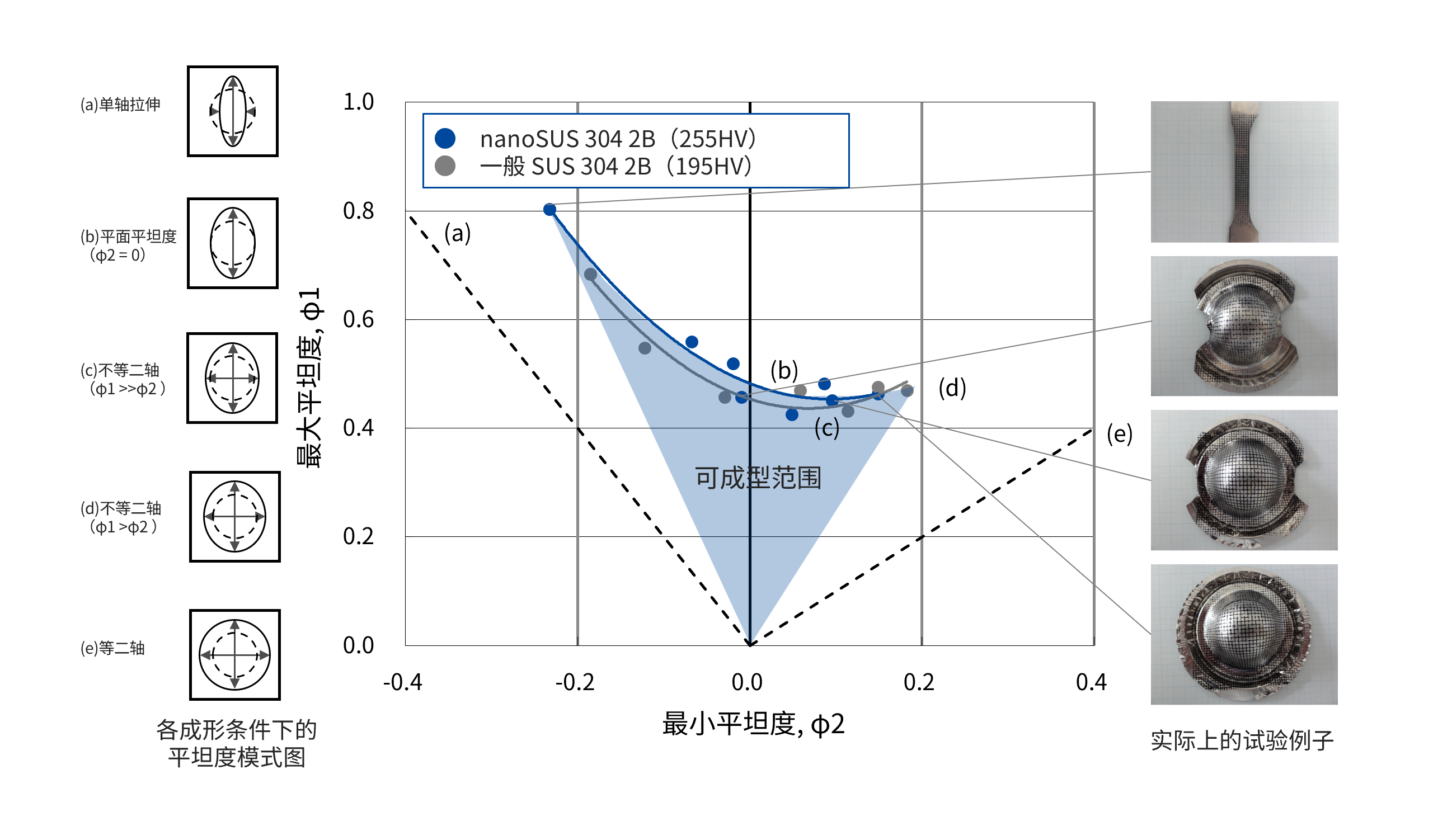 nanoSUS的2B表面状态跟一般的2B材料相比,具有更高的硬度和屈服强度(YS),但在拉伸成形性方面几乎具有相同的性能。
