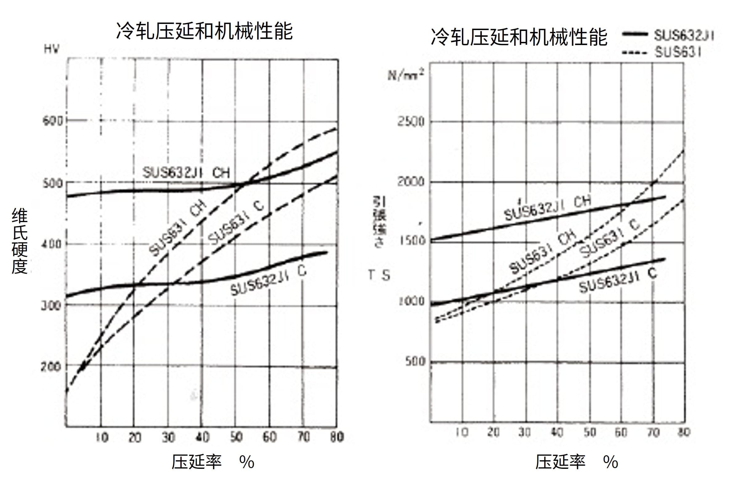 SUS631 需要中间硬化处理(马氏体化处理),而 SUS632J1 在任何状态下都可以通过一次热处理实现硬化。
